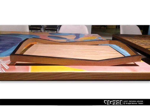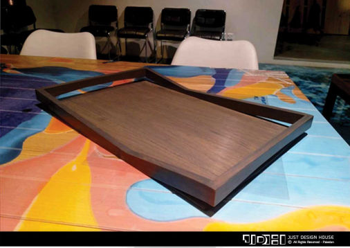 Inspired by the imaginary world portrayed in the movie Avatar. The tray glows when glasses are placed on it which was a way to hint that it was freshly plucked from the tree from that world