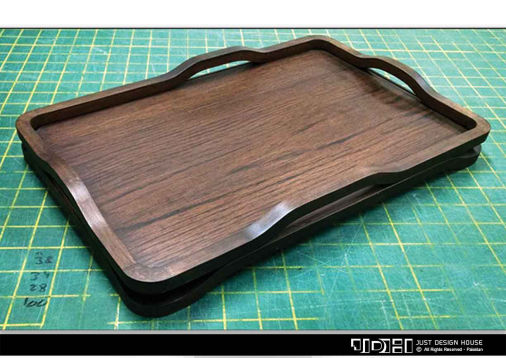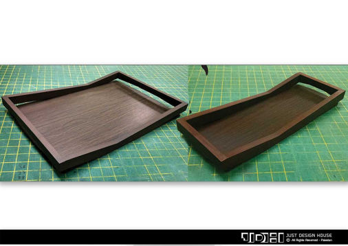 Four different designs of wooden serving trays